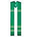 each stole features a floral damask base fabric with gold metallic jacquard banding, custom dyed fringe and matching satin backing.