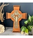 Celtic wall cross crafted of Salvadoran Cedar wood with silver enamel finished Celtic cross and corpus. Complete with Celtic knot designs. 9" x 12" x ⅜” thick. Ready to hang with sawtooth hanger on back. Boxed.