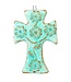 Clay cross with flowers in a turquoise distressed finish. Handcrafted in Mexico. 5.3" X 7.5"