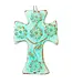 Clay cross fashioned with roses, hand crafted and painted with a distressed turquoise finish. 5" X 8"
