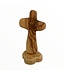 Standing Olive Wood Comfort Cross, comes beautifully detailed with the Holy cup and Rosary on the front. This Comfort Cross can be removed from the base and held by hand. It's magnetic, which allows for it to stand on its own.