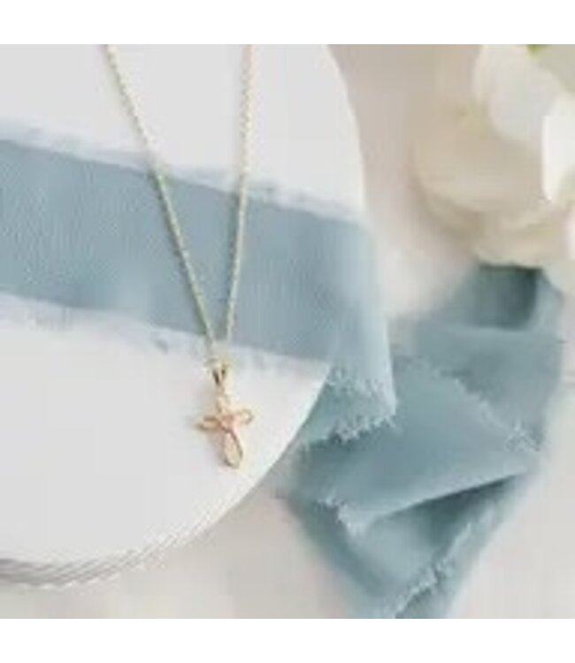 Girls 14K Gold-Plated Pink Cross Necklace 1st Communion Gift 14"
