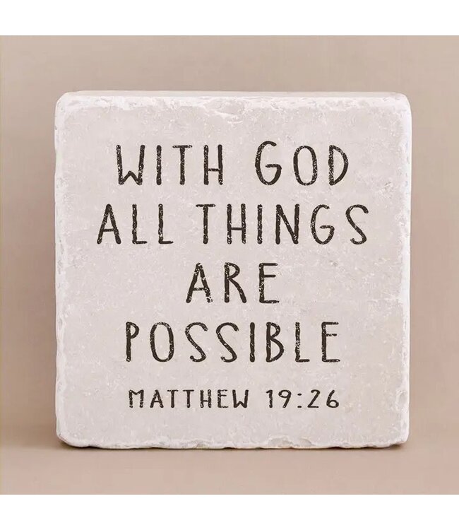 This Scripture Stone serves as a timeless reminder of God’s limitless power, faithfulness, and hope. Tumbled marble stone. 2x2x1"