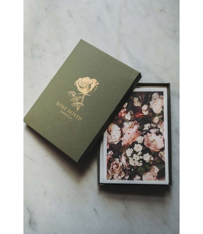 A selection of ten images from Jamie Beck's celebration of Rose de Mai, in elegant artisan folded cards, hand printed in France by L’atelier du Bibloquet.