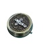 Bronze-colored filigree iron cast pyx for transporting consecrated hosts. 2 x 2 x 0.75"; holds 10 hosts.