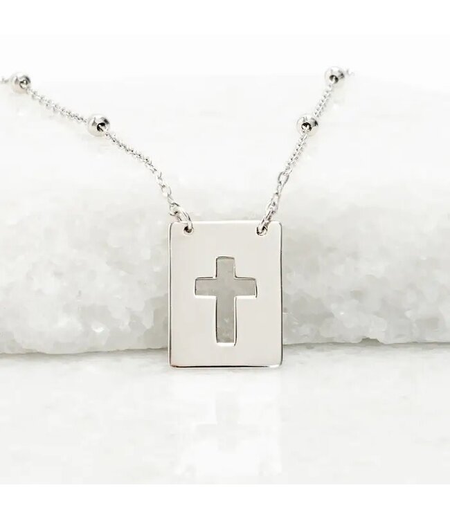 Where faith and purpose meet. Crafted in brilliant sterling silver, the Sanctuary Necklace features a modern rectangular pendant with a cross cutout—symbolizing light shining through.