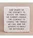 God grant us the serenity to accept the things we cannot change, the courage to change the things we can, and the wisdom to know the difference. Perfect for any occasion.