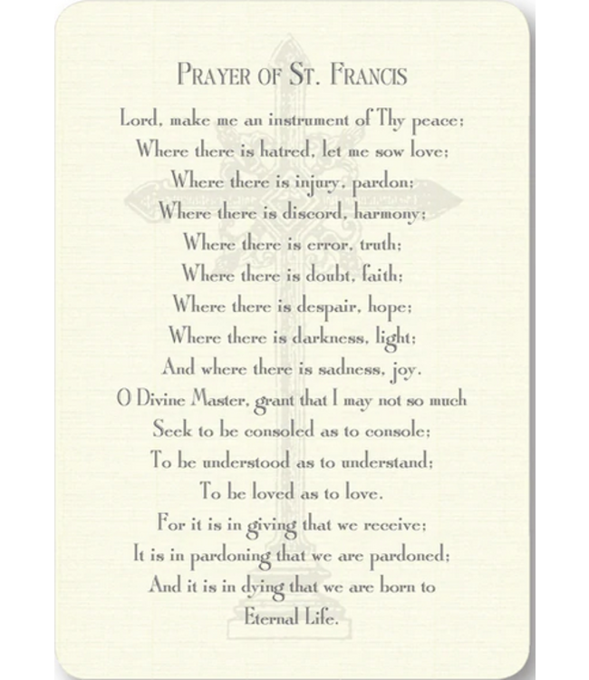 Experience the tranquility and reverence encapsulated in the Prayer of St. Francis. This set comes with 8 beautifully printed copies of the prayer, perfect for personal reflection or sharing with loved ones.