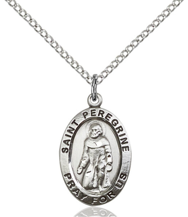 Saint Peregrine is the patron saint of those afflicted with cancer and images and medals of St. Peregrine typically show him revealing his bandaged leg. Peregrine Laziosi, born into wealth and privilege in Forli, Italy, was once a member of a group vehemently opposed to the Catholic Church. Peregrine struck St. Philip who had been sent to intervene in local papal uprisings. In return, Philip offered his other cheek. Philip’s humility and forgiveness moved Peregrine to repent and convert to Catholicism.