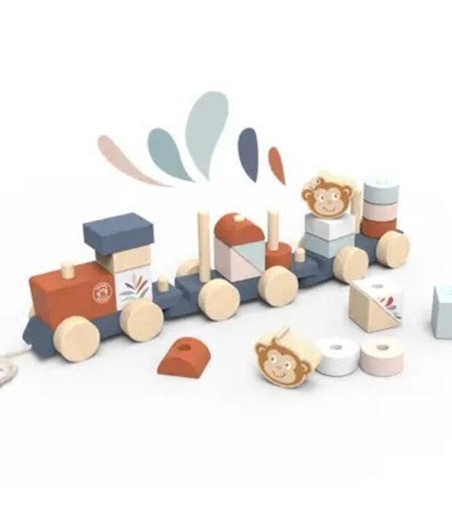 Your little one will have hours of fun, stacking elements on the train and building houses with colorful blocks.